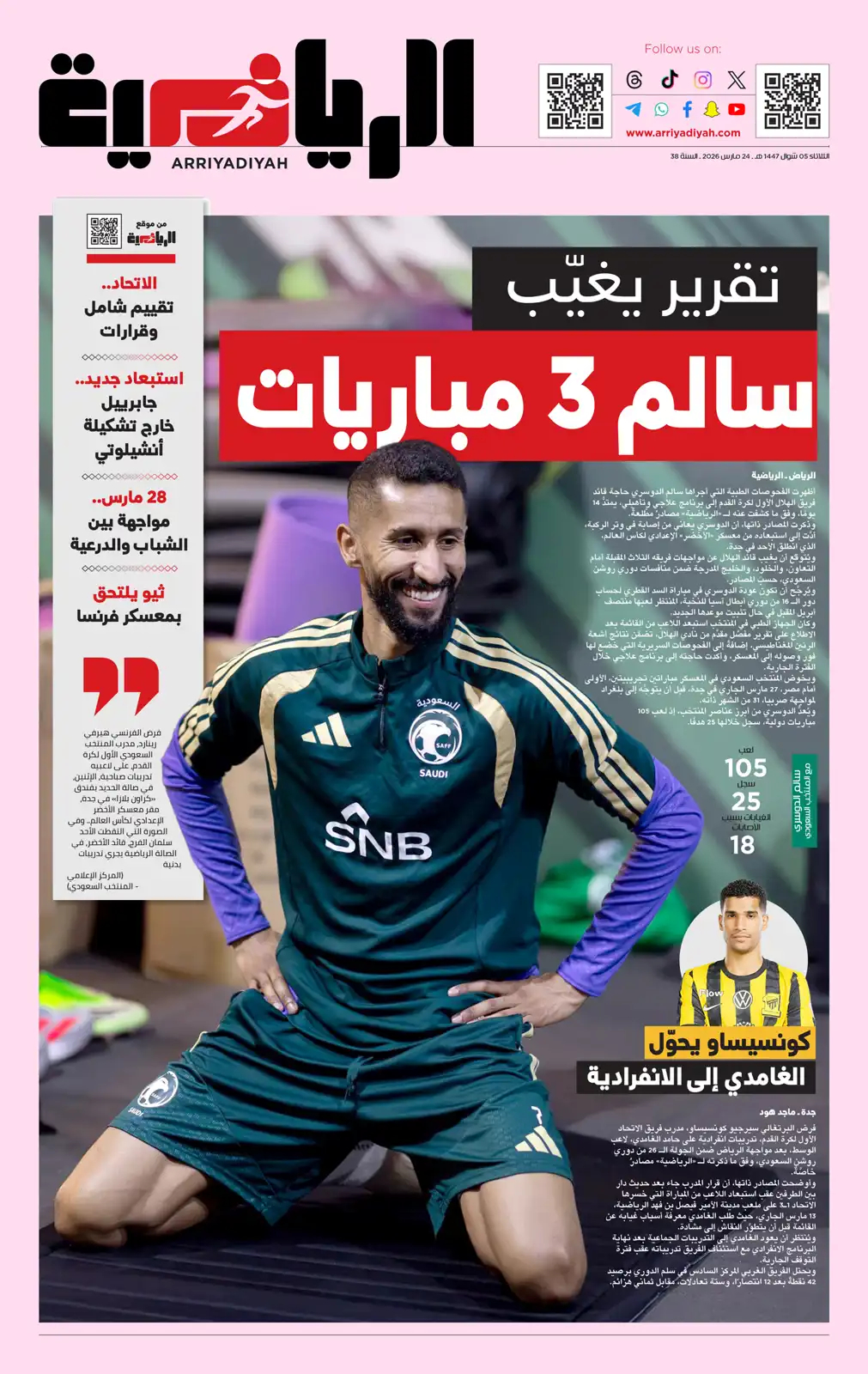 كما ركزت على مستقبل ألفارو أربيلوا مع ريال مدريد، ونجاح برشلونة حتى الآن مع هانزي فليك.. وصدمة الهلال بسبب سالم الدوسري.