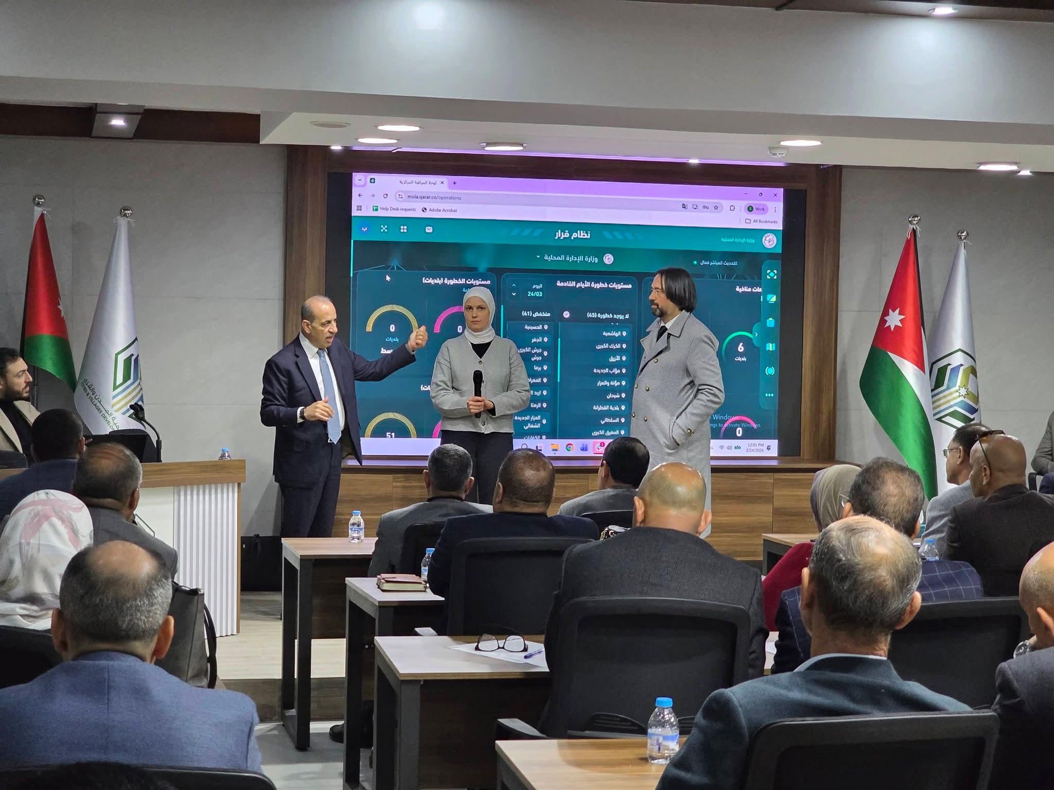 ■ التقى وزير الإدارة المحلية، المهندس وليد المصري، رؤساء لجان البلديات ومجالس الخدمات المشتركة من جميع مناطق المملكة؛ لمتابعة الجاهزية الميدانية للتعامل مع حالة عدم الاستقرار الجوي والمنخفض الجوي الشديد المتوقع تأثيرهما يومي الأربعاء والخميس.