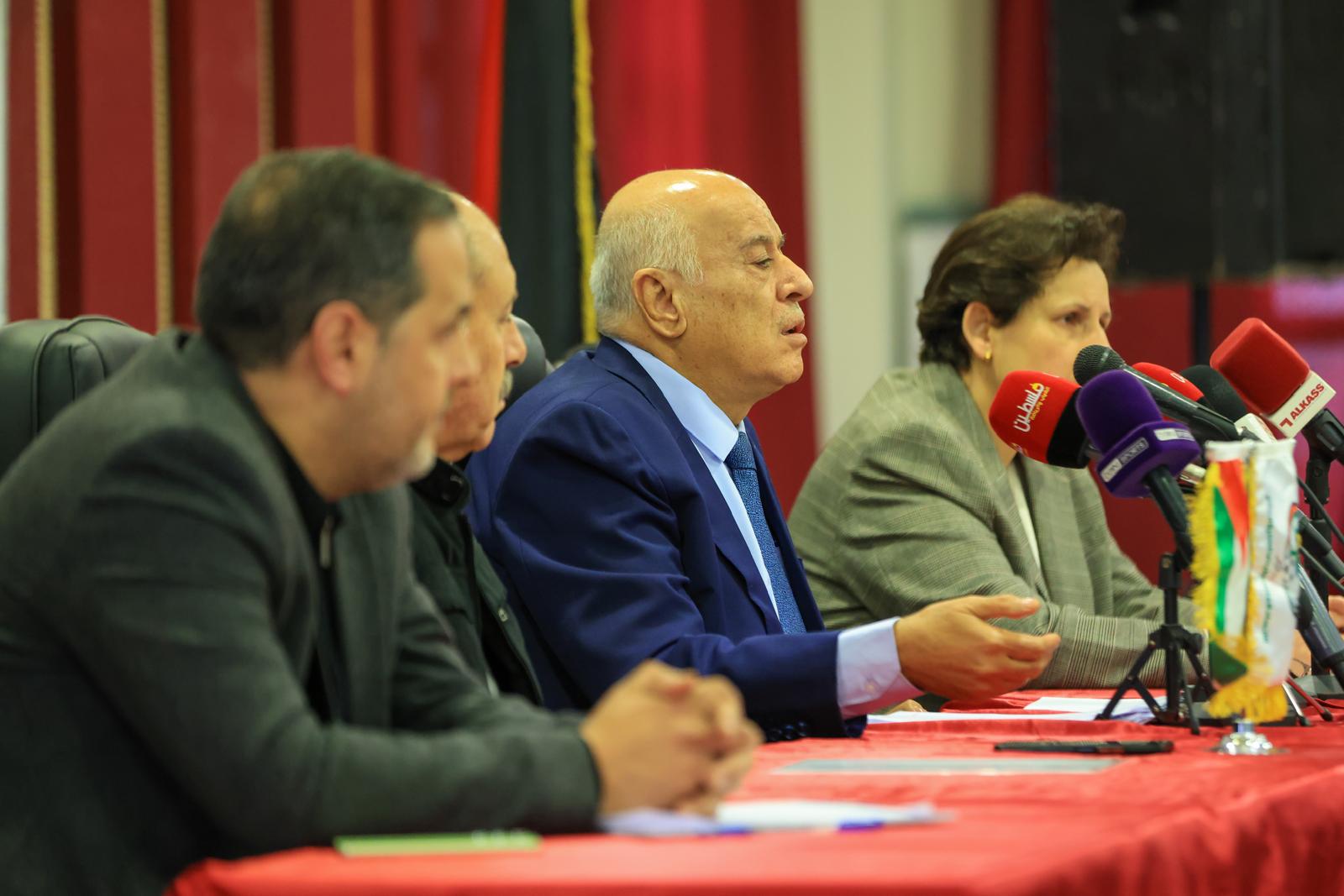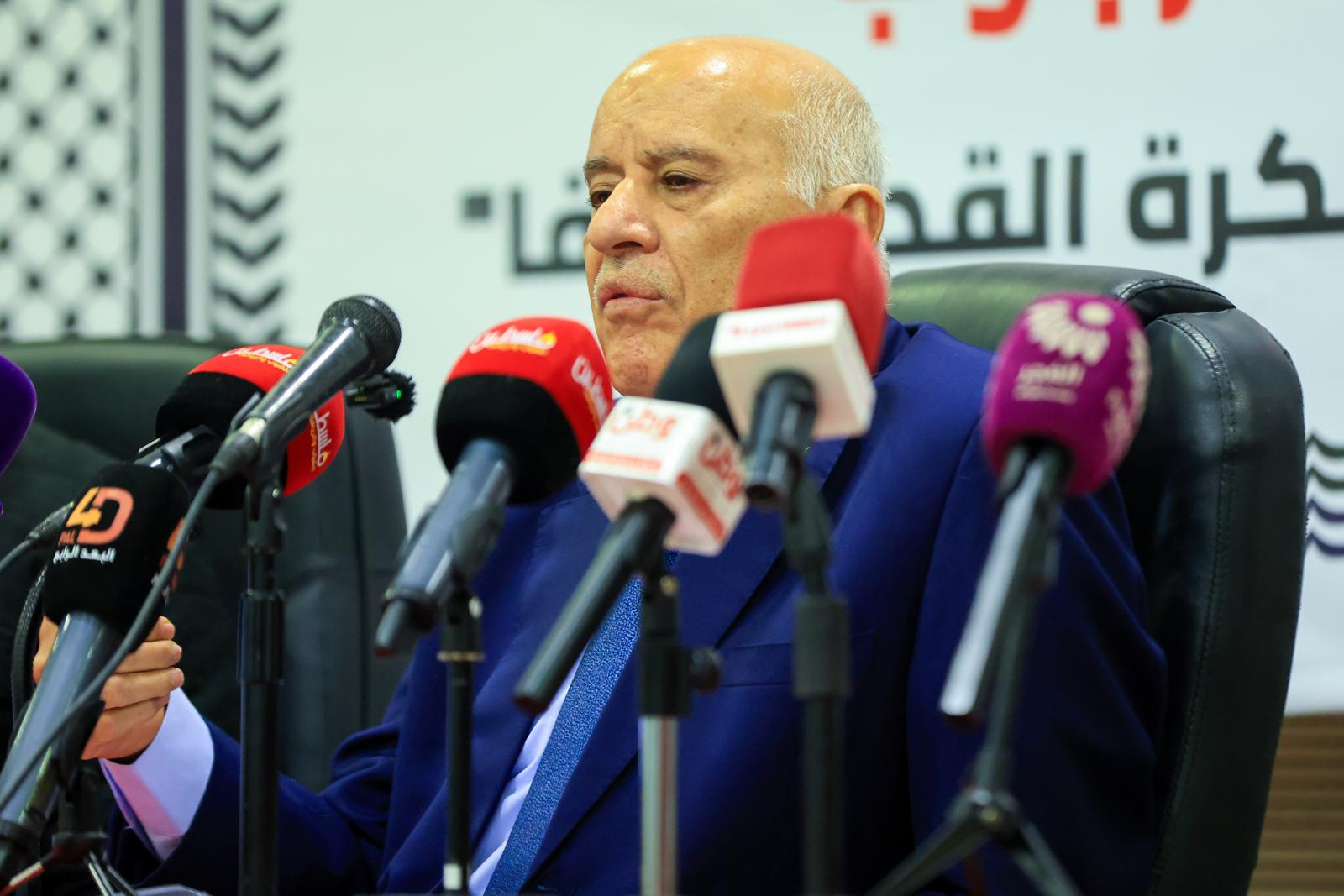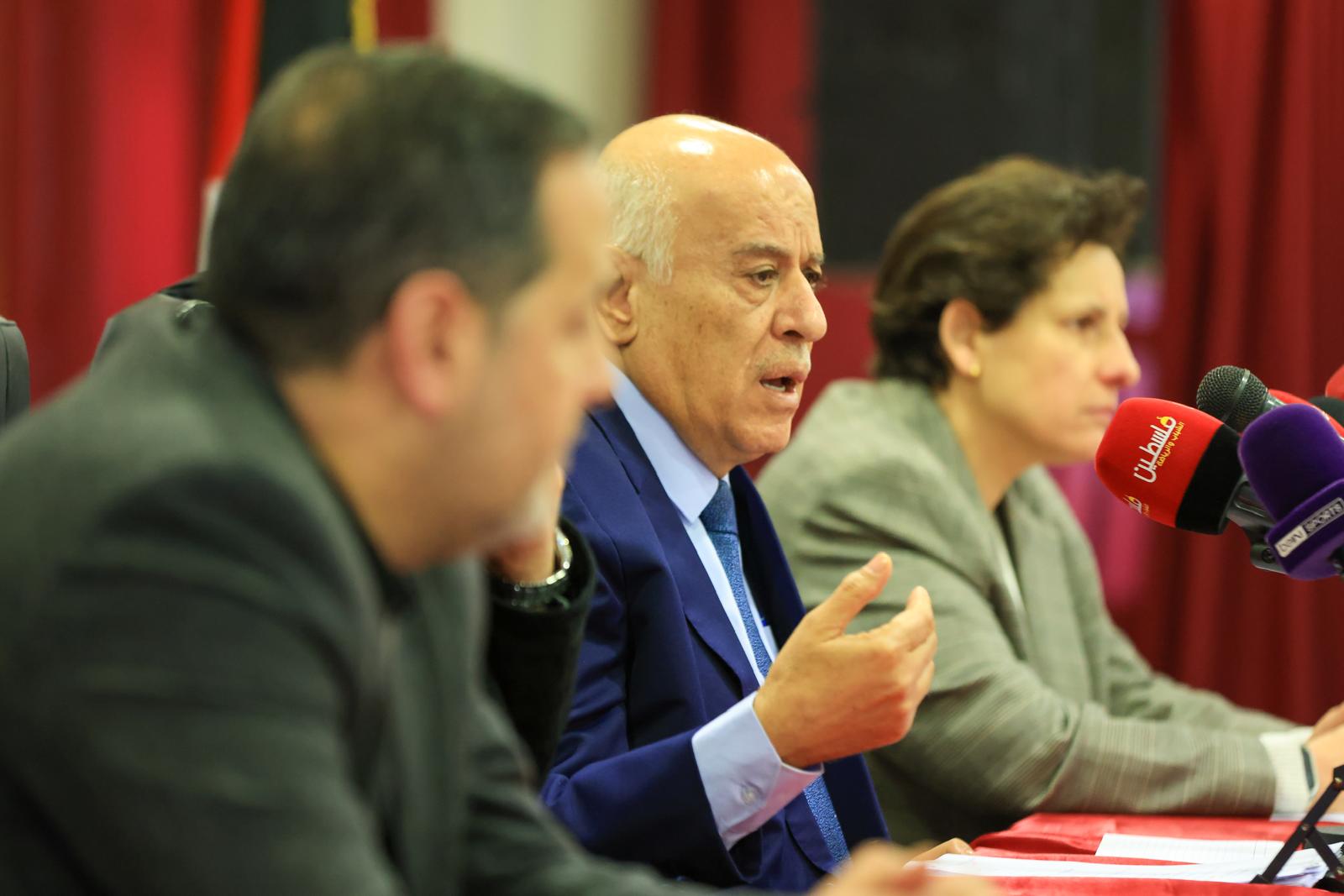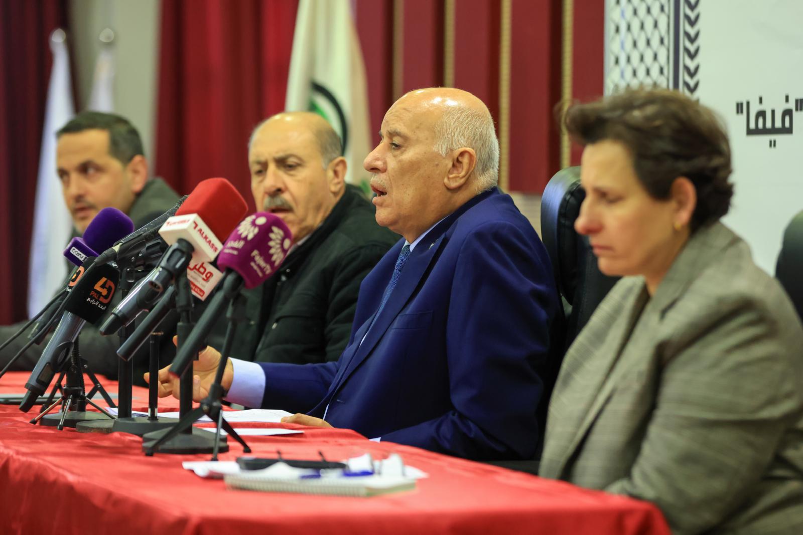 عقد الفريق جبريل الرجوب، رئيس الاتحاد الفلسطيني لكرة القدم، اليوم الثلاثاء، مؤتمراً صحفياً تناول فيه آخر تطورات التحركات الفلسطينية والقرارات الأخيرة للاتحاد الدولي لكرة القدم "فيفا" بشأن الانتهاكات الإسرائيلية بحق الرياضة الفلسطينية، مؤكداً استمرار العمل القانوني والدولي حتى تحقيق العدالة.