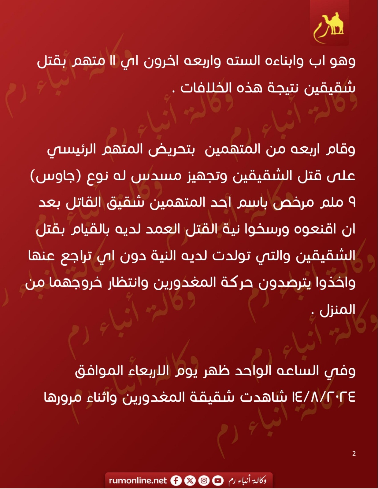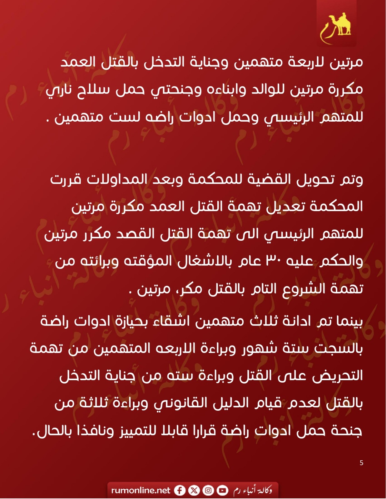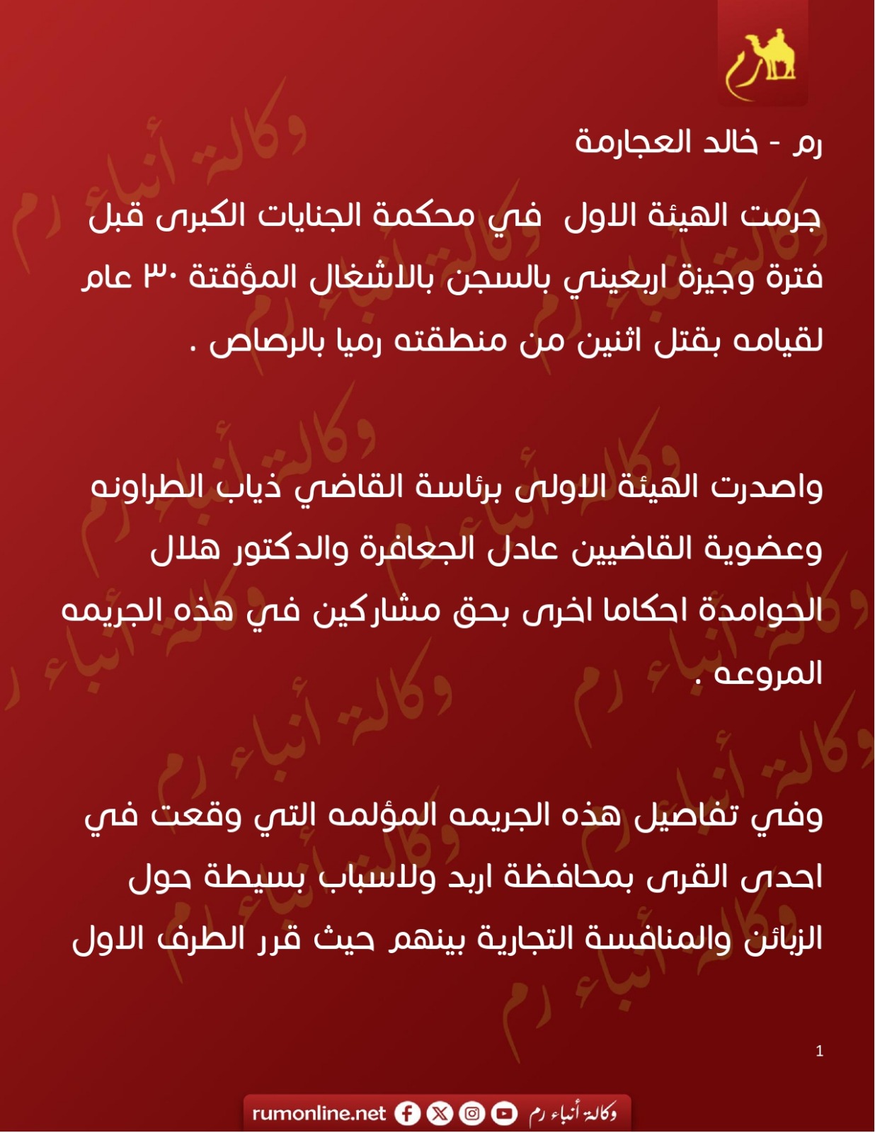 السجن ٣٠ عام لاربعيني قتل اثنين لاسباب مثيرة في احدى قرى اربد