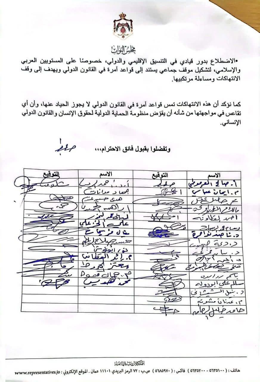 تقدمت النائب المهندسة إيمان العباسي، باسم كتلة العمل الإسلامي، بمذكرة نيابية عاجلة إلى رئاسة مجلس النواب، تمهيداً لتوجيهها إلى رئيس الوزراء، تطالب فيها الحكومة الأردنية باتخاذ خطوات دبلوماسية وقانونية حاسمة، رداً على مصادقة سلطات الاحتـ ـلال الإسرائيـ ـلي على ما يُعرف بـ"قانون إعــ ــدام الأســ ـرى الفلسطينيين".