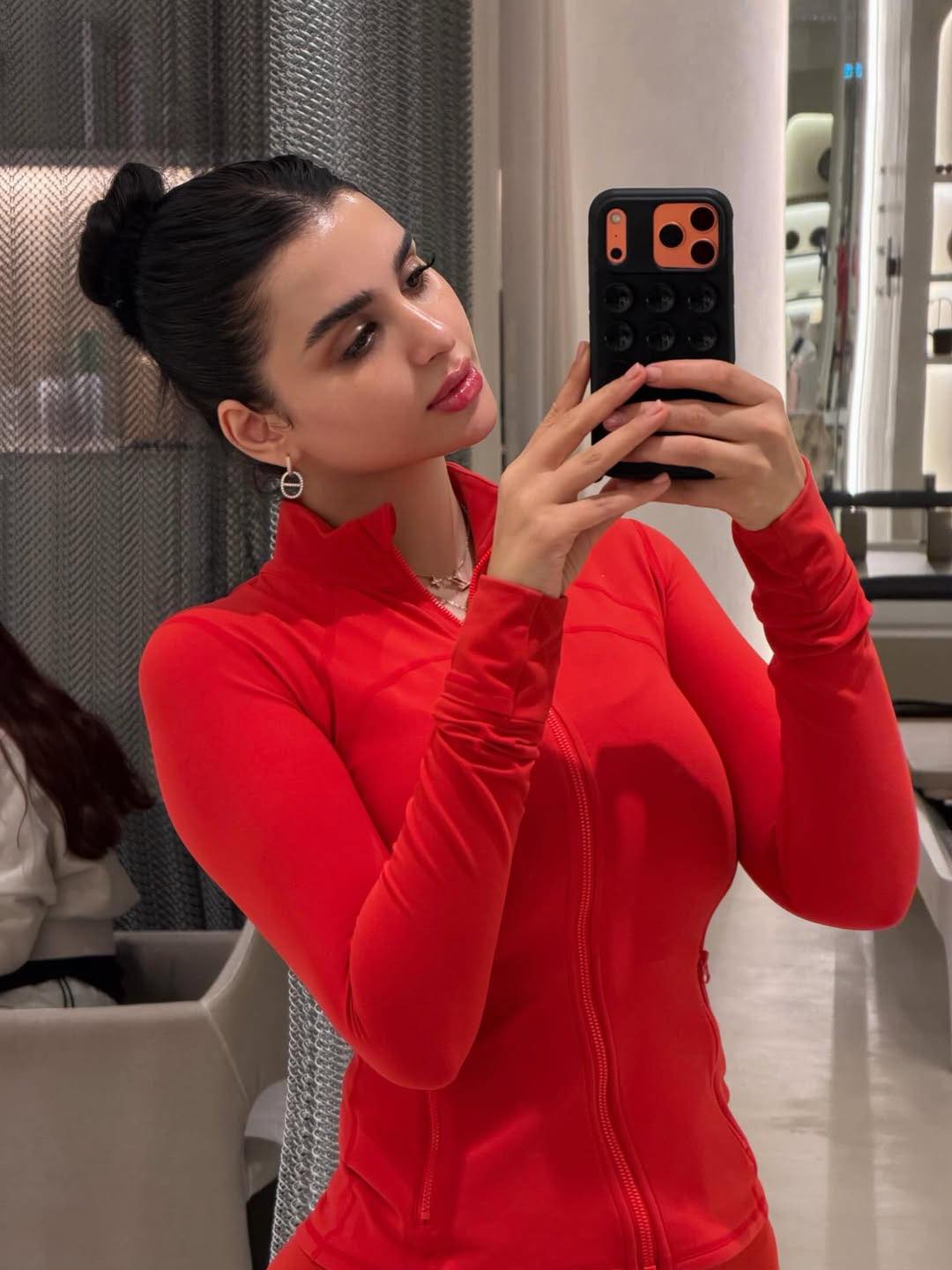 مس دعاء بـ لوك رياضي باللون الأحمر