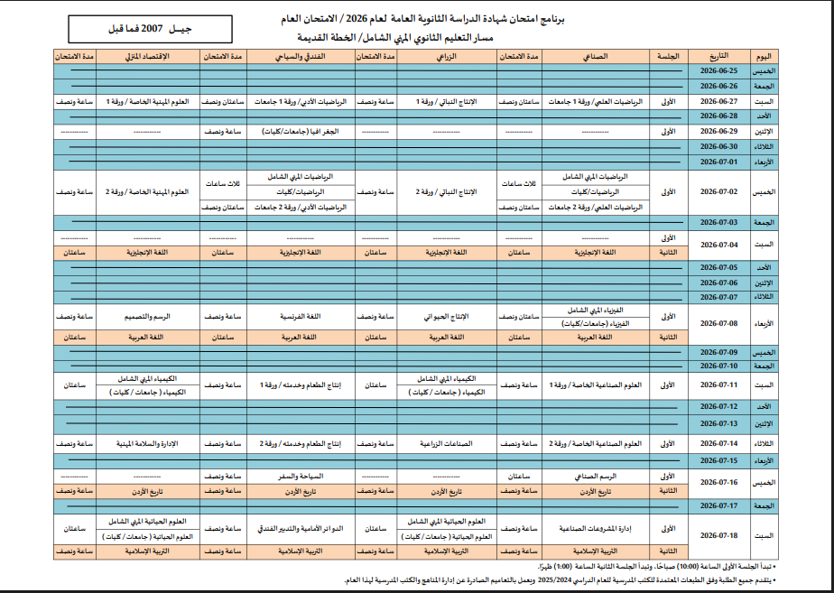 وسيبدأ أول أيام الامتحانات يوم الخميس 25 حزيران وتختتم يوم السبت 18 تموز.