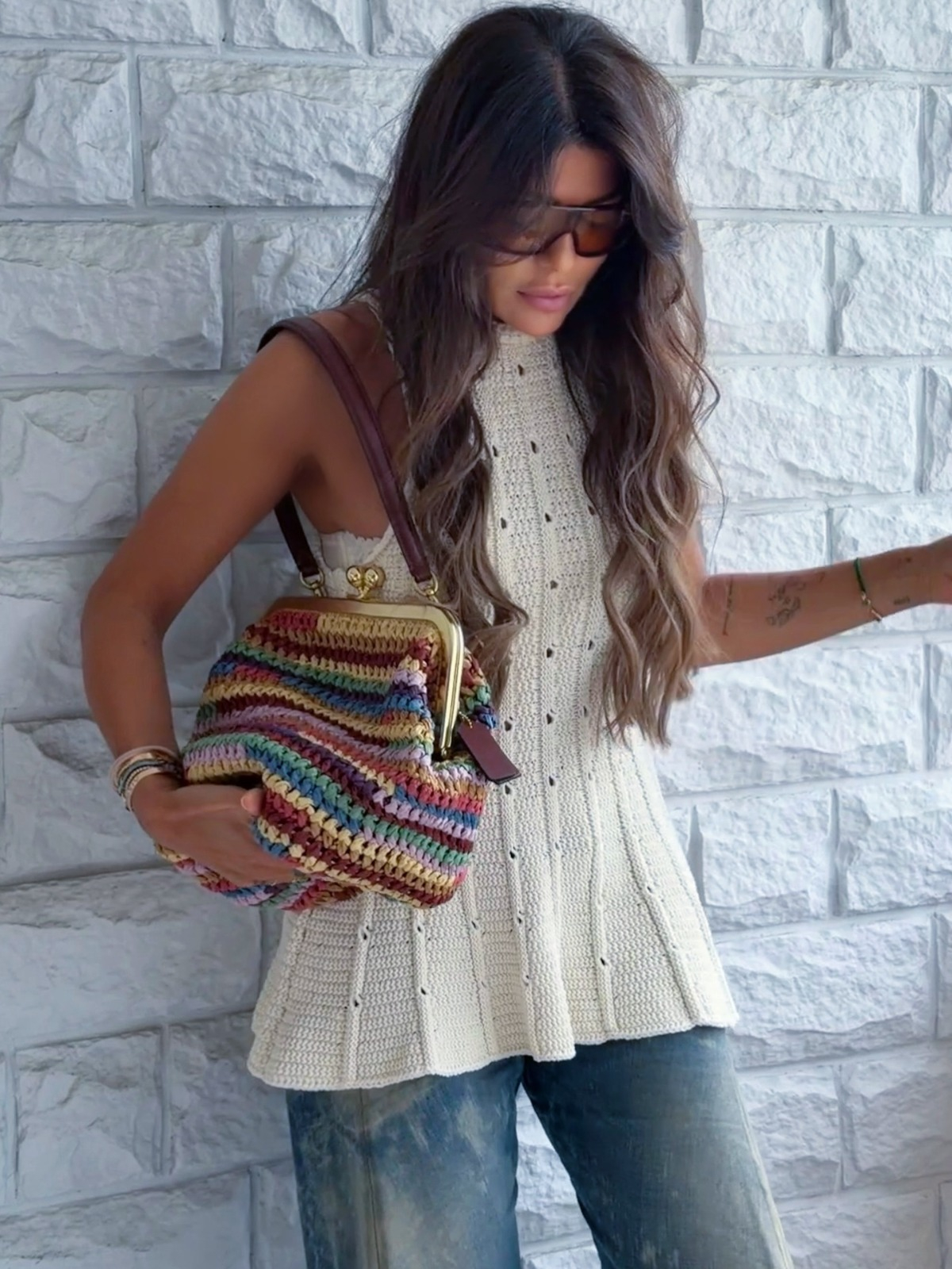 كما نسّقت العنود مع إطلالتها نظارة شمسية، وحقيبة يد مبهجة كسرت هدوء الألوان، ومنحتها طاقة وحيوية.