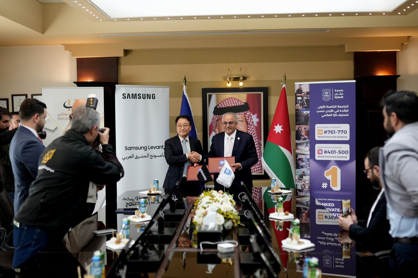 وعلى هامش المعرض، وقّعت جامعة عمان الأهلية مذكرة تفاهم مع شركة سامسونج إلكترونيكس المشرق العربي، لتعزيز التعاون الأكاديمي والبحثي وربط طلبة الجامعة وموظفيها بأحدث الابتكارات التكنولوجية.