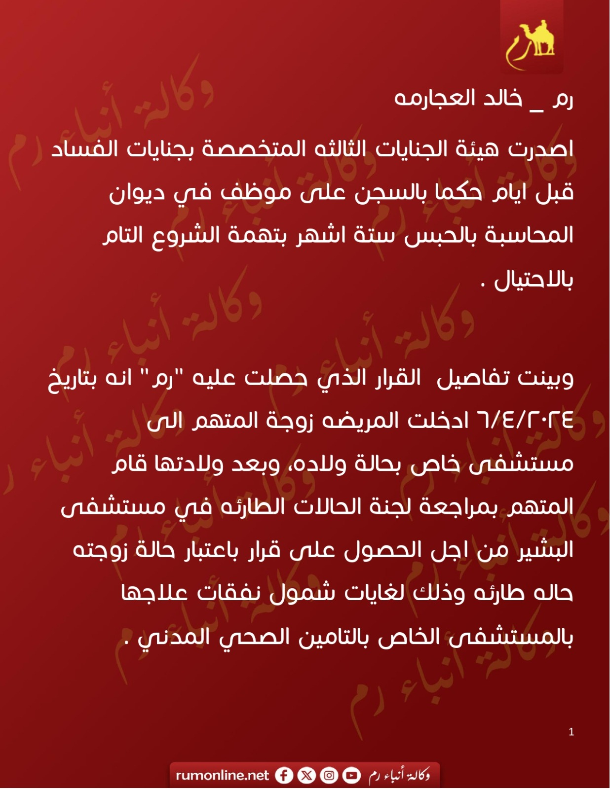 الحبس ستة شهور لموظف في ديوان المحاسبه .. و"رم " تنشر التفاصيل