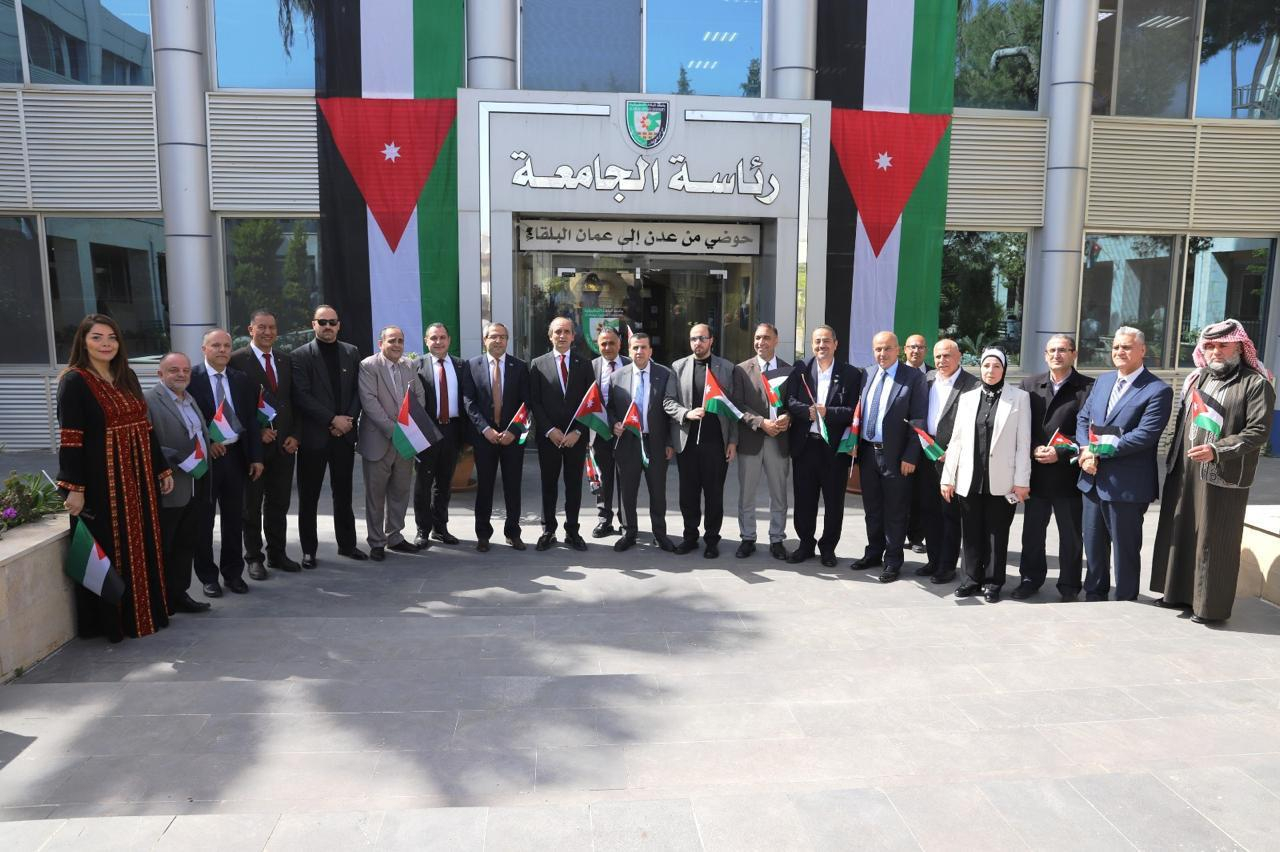 رم - احتفلت جامعة البلقاء التطبيقية بيوم العلم الأردني، بالتزامن مع جميع كلياتها المنتشرة في مختلف محافظات المملكة، في فعاليات وطنية نُظّمت في الحرم الجامعي ومواقع الكليات، بحضور رئيس الجامعة الأستاذ الدكتور أحمد فخري العجلوني، ونواب الرئيس، وعمداء الكليات وأعضاء الهيئتين التدريسية والإدارية، إلى جانب حشد من الطلبة.