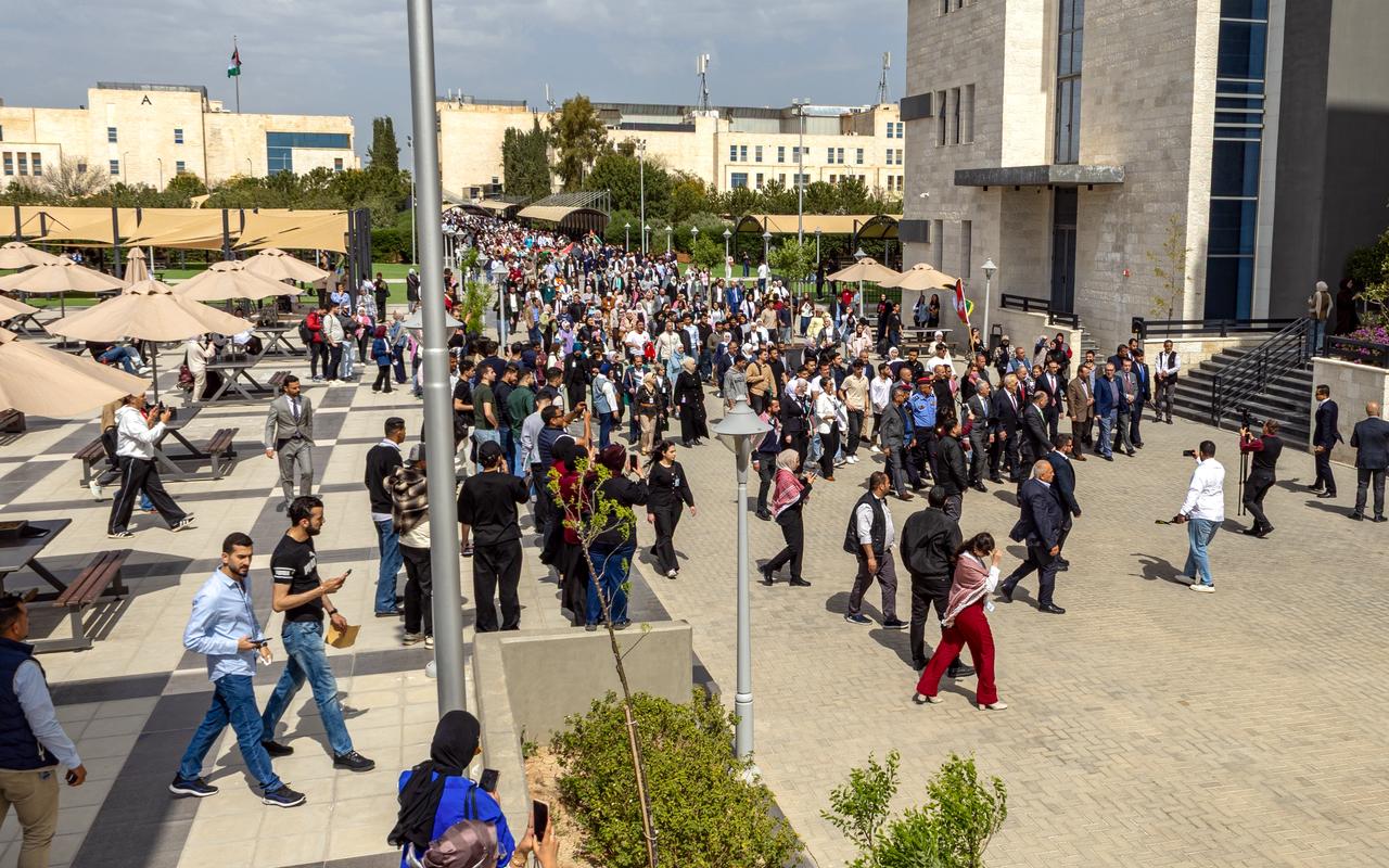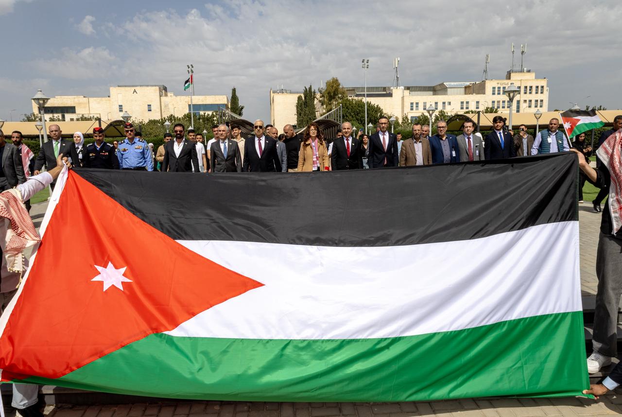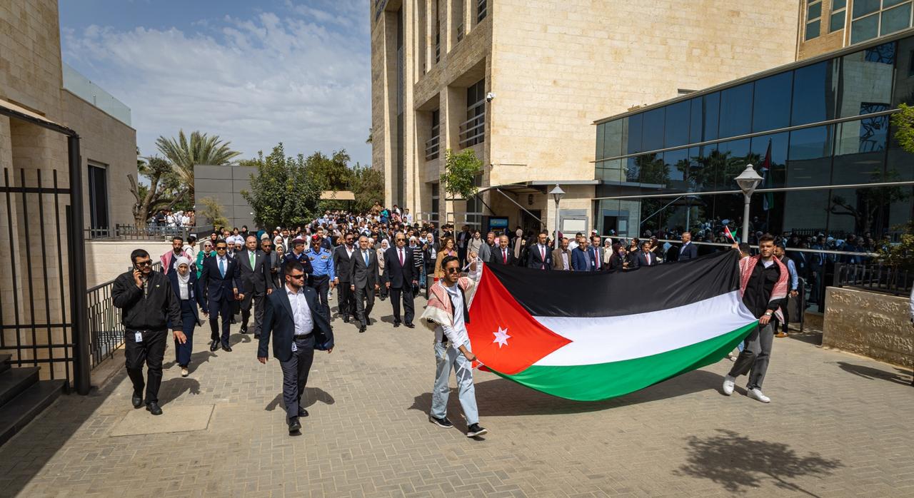 شهدت الفعالية التي انطلقت من سارية "العلم والولاء" الأعلى ارتفاعًا من بين سواري الأعلام في الجامعات، حضور رئيس مجلس أمناء الجامعة الدكتور يعقوب ناصر الدين، ورئيسة الجامعة الأستاذة الدكتورة سلام المحادين، إلى جانب عدد من النواب وأصحاب السعادة.