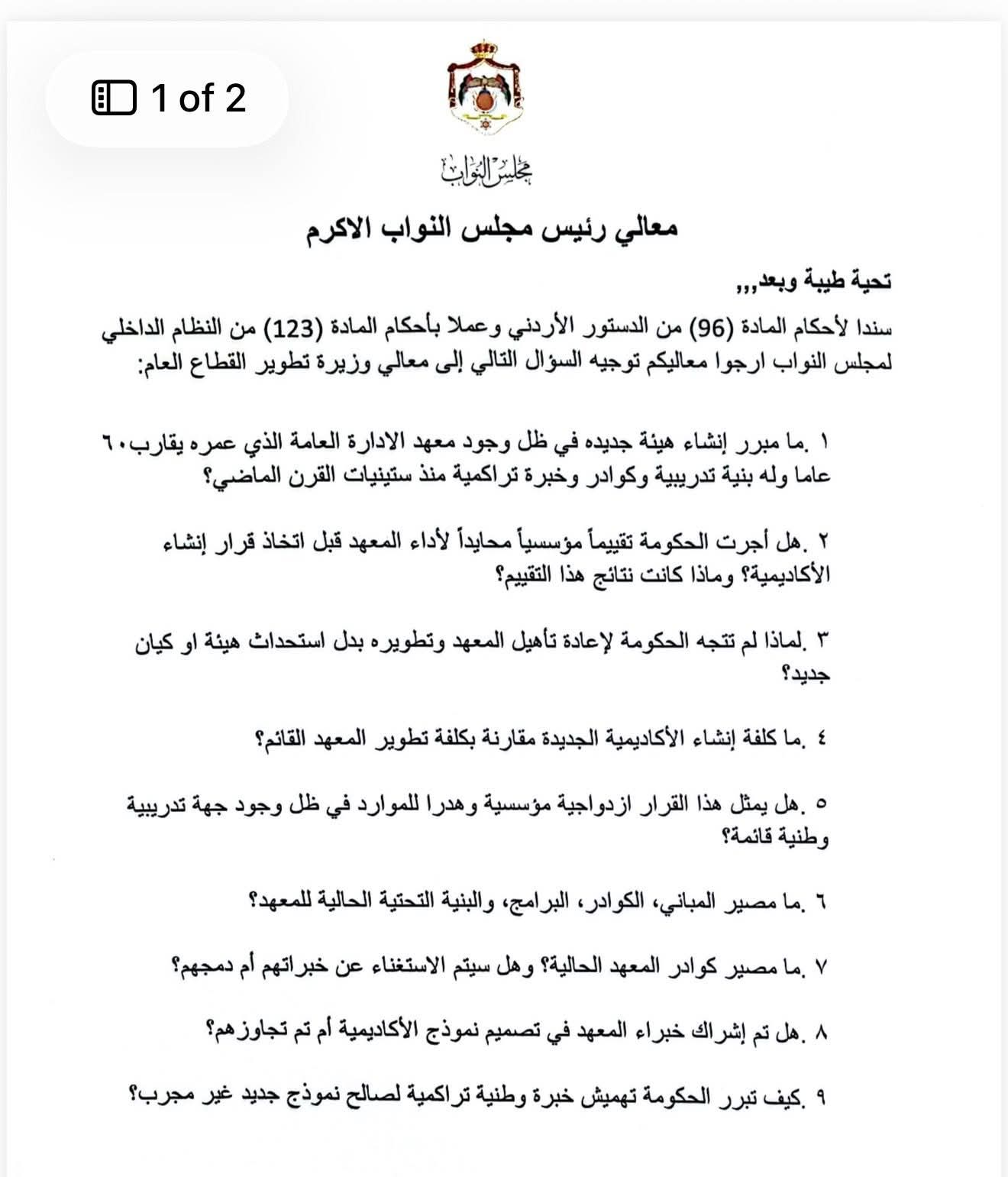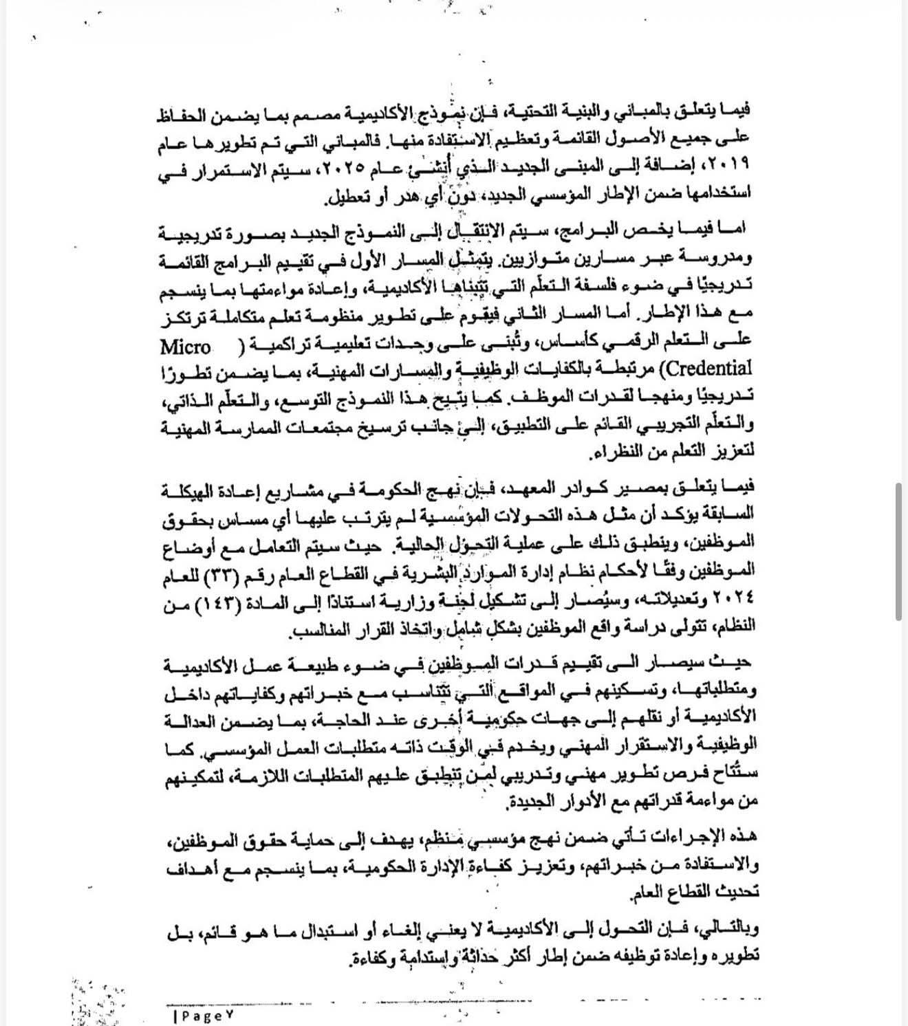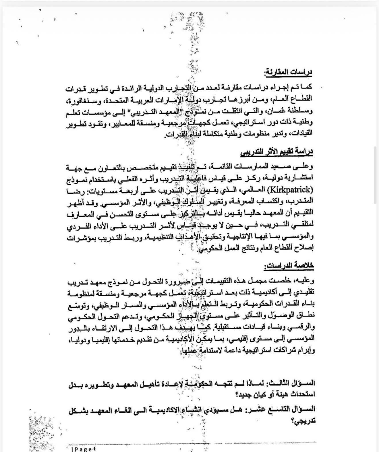 الحكومة تقر:“لا يوجد تقييم مؤسسي شامل لأداء المعهد” ثم تقفز لإنشاء أكاديمية! فكيف تنشئ بديلا دون تقييم القائم والحاجة الى شيء جديد