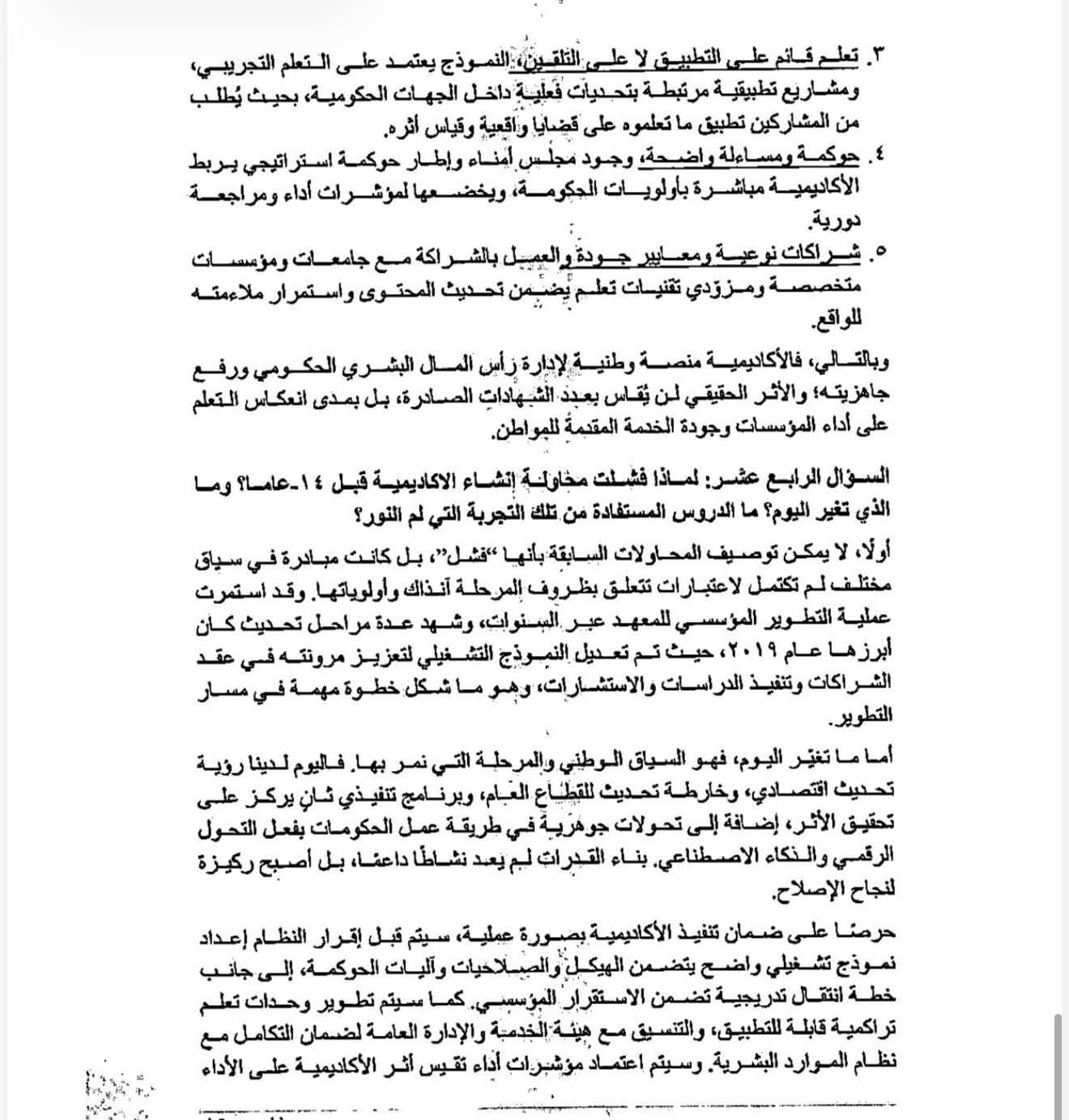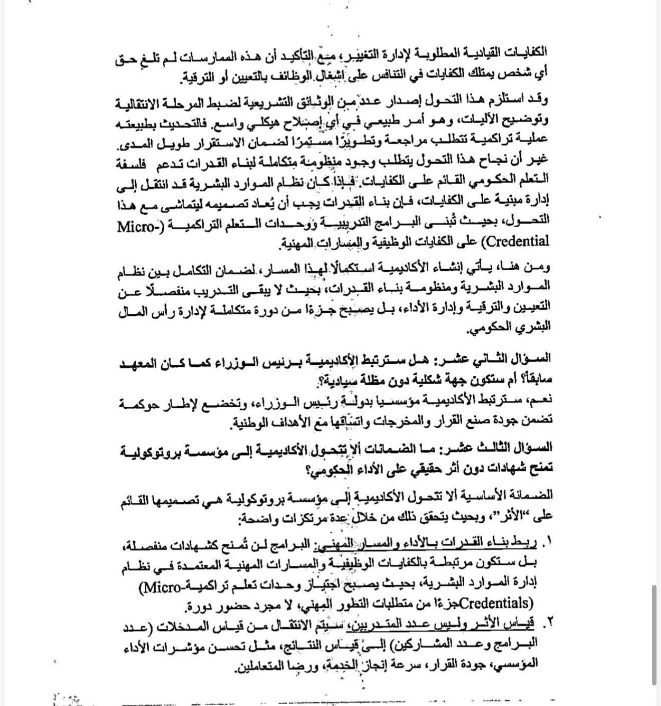 فالحاجة ليست لأكاديمية بل لإصلاح عميق لنظام الموارد البشرية، والحوافز والترقيات، ومساءلة القيادات، وبدون ذلك أي أكاديمية ستكون واجهة حديثة لنظام قديم
