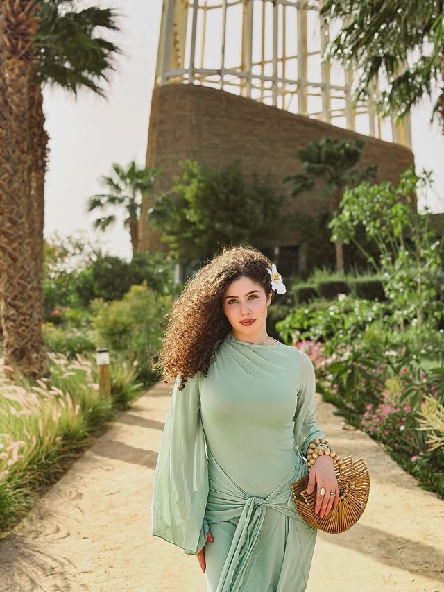سلمى عبد العظيم بفستان نعناعي من شهر العسل