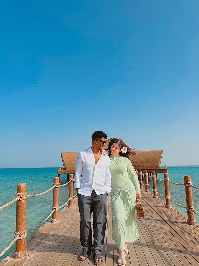 رم - بعد أيام قليلة من حفل زفافها، شاركت البلوغر المصرية #سلمى_عبد_العظيم، صورًا عبر "إنستغرام" من شهر العسل، إذ أطلت بفستان شاطئي بسيط، باللون النعناعي الفاتح.