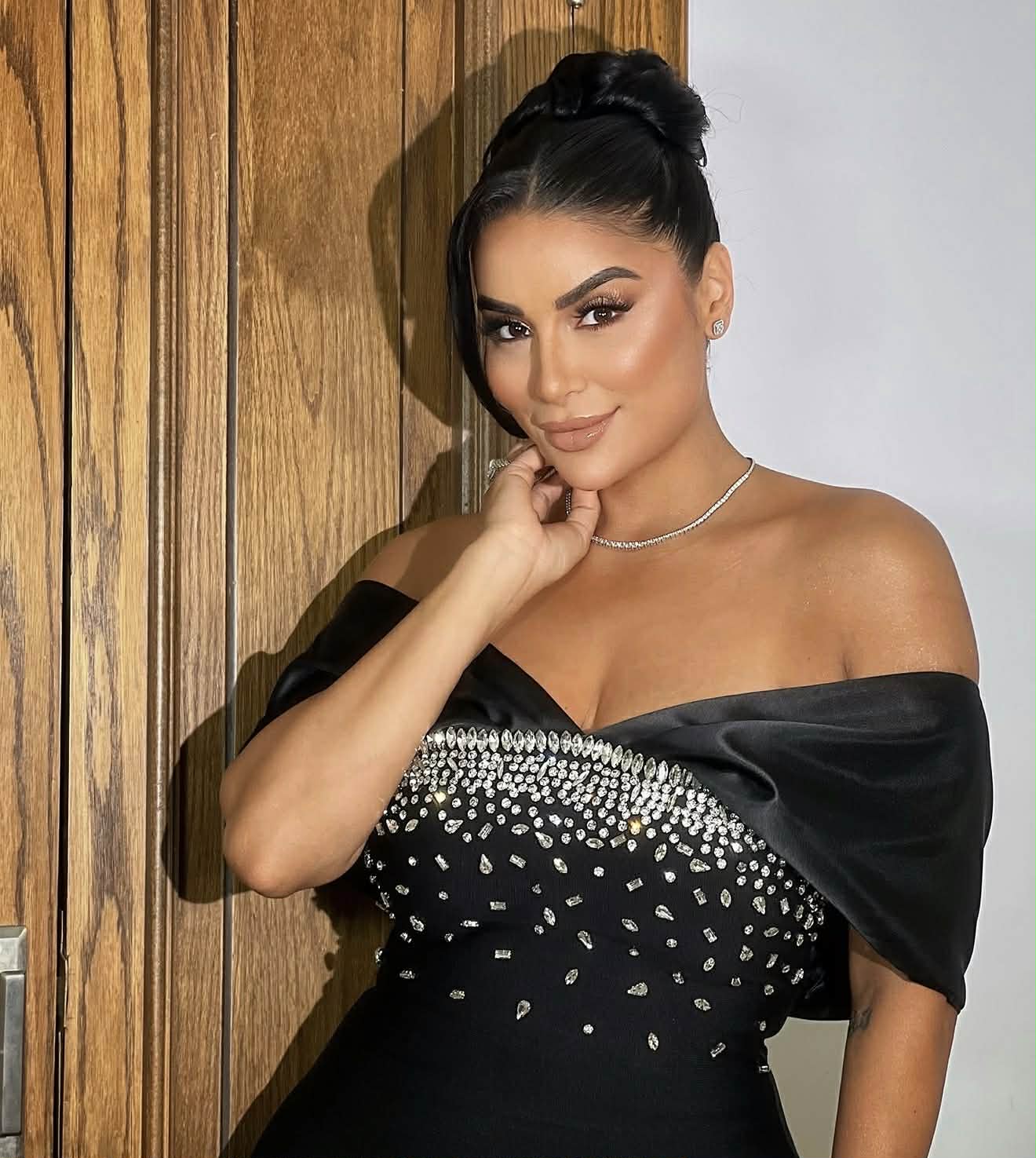 وظهرت جوري بكر، بإطلالة ملفتة مرتدية فستانا باللون الاسود اتسم بالأوف شولدر و مطرز بالفضى وهو ما ابرز خصرها المنحوت و كشفت عن أناقتها و قوامها الممشوق.